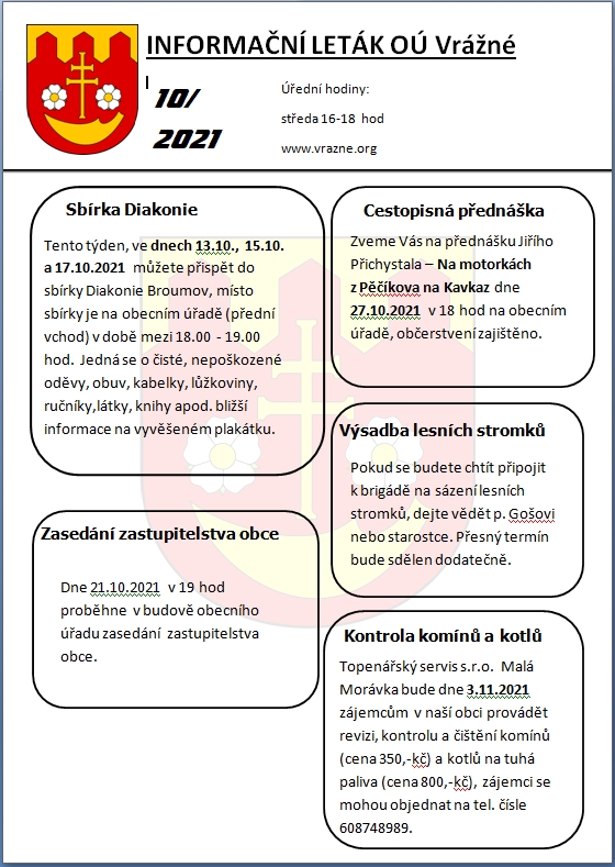 Informační leták OÚ Vrážné 10/2021